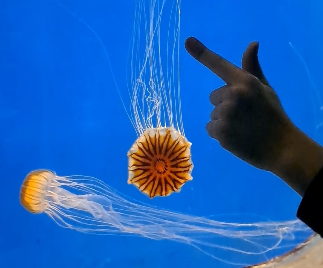 אטרקציות ייחודיות מחוץ לתצוגת ים סוף מצאנו בבריכה עם חתולי ים שנעים בחשאיות על הקרקעית ואז מנסים להימלט מצידי הבריכה. יש מיכל סוסוני ים שחלקם בהריון (הזכרים כאן הם אלו שנושאים את הביצים). בכל פעם שראינו סוסון ים נפוח אוריאן צעק "הנה בן, הנה בן", שזה קונספט נחמד, אני חייבת להודות. סוסון ים יש גם בגינת האקווריום, והוא ענק ועשוי מחלקי פסיפס. כנהוג בארץ זה גם מתקן מאולתר לילדים, שהפכו אותו לחצי מגלשה וחצי במת צילומי אינסטה. נהרנו עם עדר סוסוני הים.