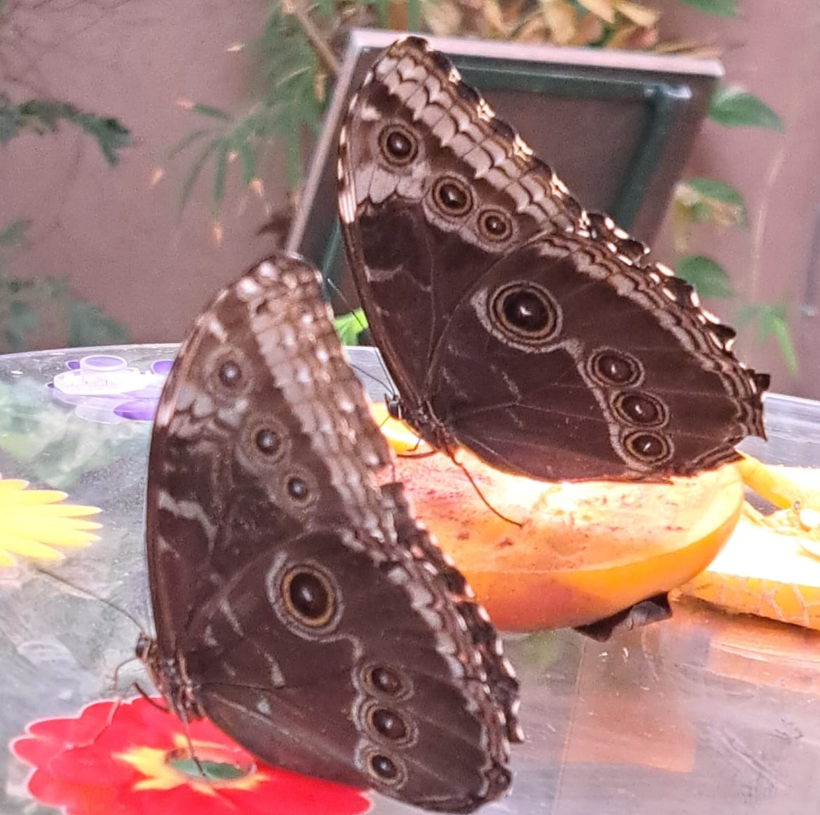 בינתיים הם סתם מרפרפים להם גדולים, מרהיבים וכמעט סוריאליטים, בגודל כף היד שלך, ושאסור להם לשבת על כף היד שלך, ולמה שהם בכלל ירצו? יש פה בופה חופשי של פירות.